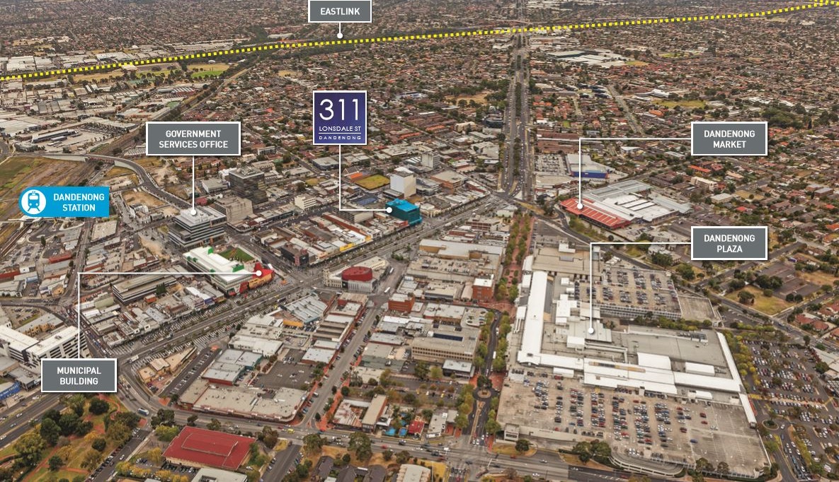 311 Lonsdale Street is well serviced by public transport facilities with the Dandenong Railway Station and several bus services along Lonsdale Street servicing the surrounding area. Only 30 minutes to the Melbourne CBD, the property benefits from outstanding vehicle accessibility with the entrance to Eastlink connecting to the Monash Freeway within 2 kilometres (approx.) and easy accessibility to major roads such as Cheltenham Road and Princes Highway.