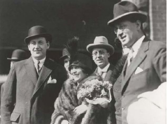 James Nevin Tait (left), with ballerina Anna Pavlova, one of the many artists that were brought to Australia by J & N Tait (National Library of Australia).