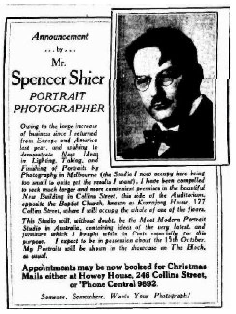 The portrait photographer Spencer Shier (1884-1946) leased an entire floor of the building for studios between 1927 and 1934. Shier advertised his new studios as: